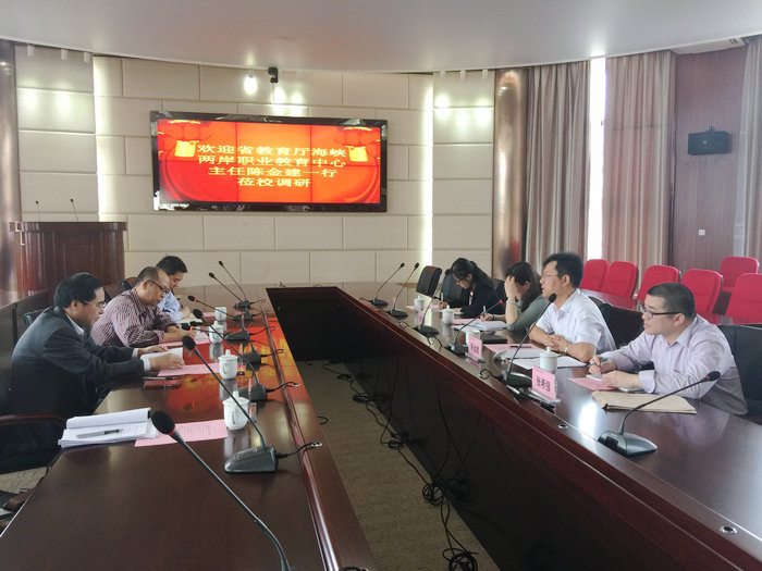 5月17日上午,福建省教育厅海峡两岸职业教育中心陈金建主任一行4人莅临开云官网,对开云官网申报的闽台“校校企”联合培养人才专业(工业工程技术)开展调研。袁新文校长、信息管理工程系和对外交流与合作办公室的相关人员参加了汇报座谈会。