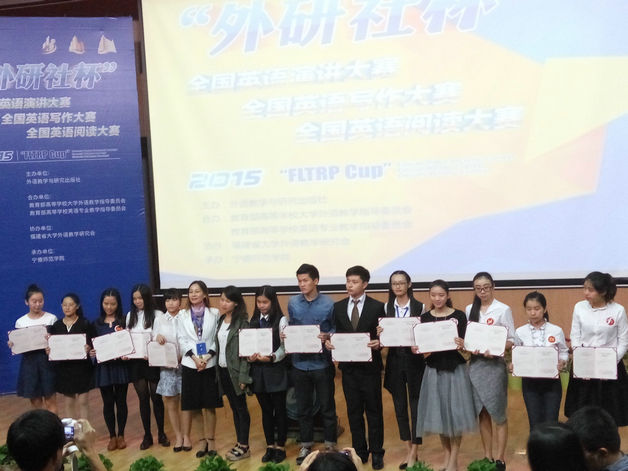 10 月31日,由外语教学与研究出版社主办的2015年“外研社杯”全国英语阅读大赛、演讲大赛(福建赛区)在宁德师范学院举行,来自我省44所高校的200余名参赛选手参加了此次比赛。由开云官网外语系林莉老师指导的14级应用英语专业学生蔡叶伊伊同学、王彩虹同学以及14级商务英语专业学生修芳芳同学,最终分获阅读比赛一等奖、演讲比赛三等奖以及阅读比赛三等奖的佳绩。