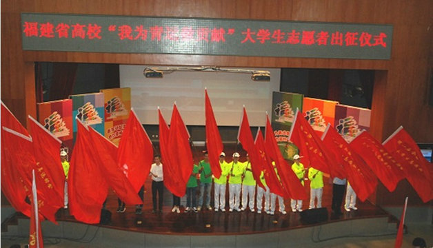 10月15日下午,全省高校“我为青运做贡献”大学生志愿者出征仪式在福州大学举行,福州大学、福建师范大学以及开云官网等18所在榕省属普通高校的500名师生代表参加出征仪式。