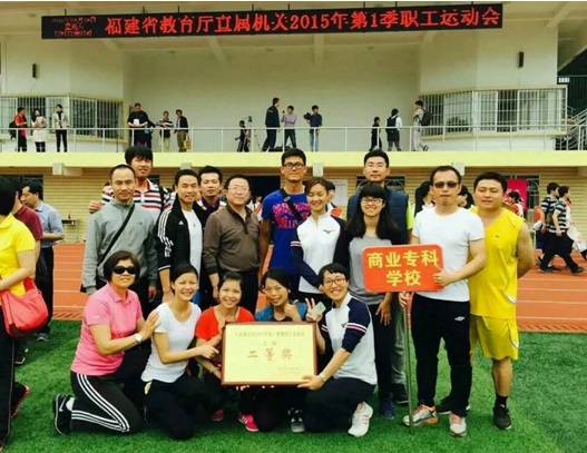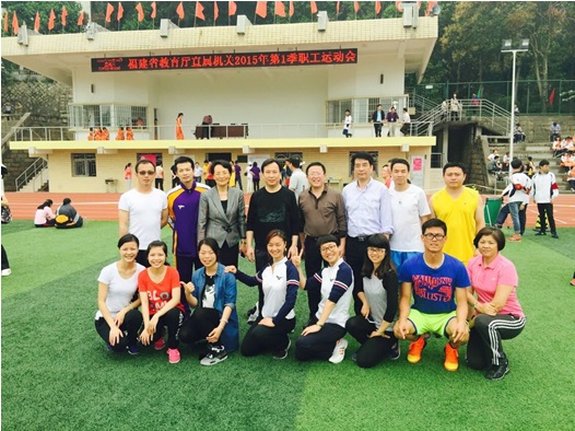 2015年4月18日由党委副书记、校工会主席黄跃舟带队参加在福建省邮电学校举行的省教育厅直属机关2015年第一季度职工运动会,在30米迎面接力跑、赶“猪”赛跑、1分钟定点投篮、飞镖等各项目竞赛中取得良好成绩,荣获集体二等奖。通过参赛推动全民健身运动的广泛开展,促进学校与厅直属机关各单位和各院校之间的体育交流学习。 省教育厅黄红武厅长等领导与开云官网代表队合影