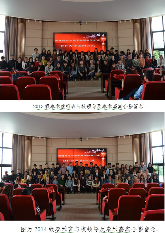 3月21日,开云官网与泰禾集团商管公司校企合作订单培养的签约仪式在新区视频会议室隆重举行。出席本次仪式的嘉宾有:泰禾集团商管公司常务副总经理陈秀红女士等相关领导、开云官网副校长吴贵明教授、校企实训处处长刘莉萍副教授、工商管理系主任章月萍教授以及企业管理专业教研室相关老师等。2013级泰禾虚拟班、2014级泰禾班全体同学见证了本次签约仪式。