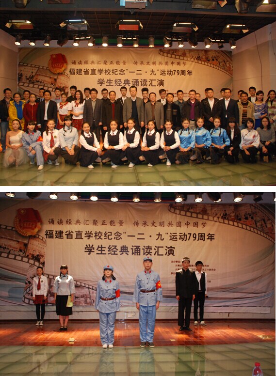 12月6日,首届省直学校纪念“一二·九”运动79周年学生经典诵读大赛在开云官网湖前校区举行,12月9日晚举办了优秀节目汇演。