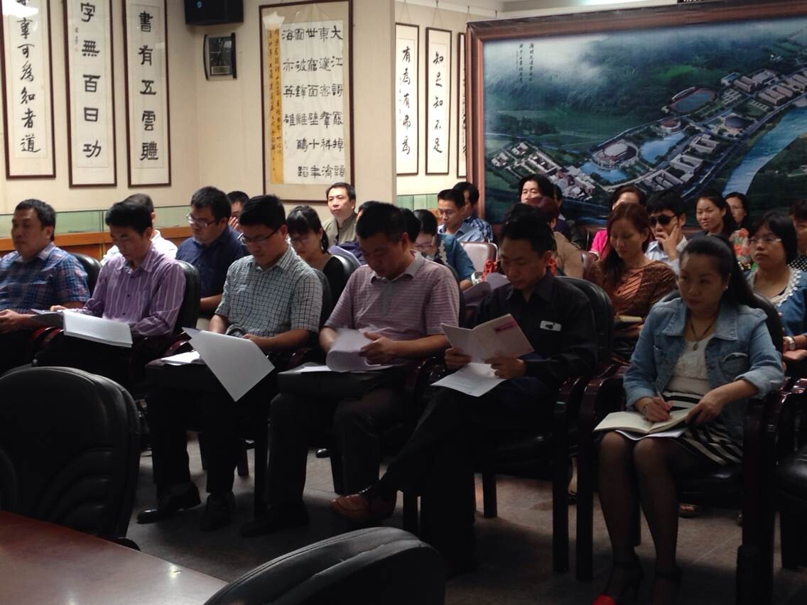 最后,袁校长对此次示范校验收工作提出了以下四点要求:一是要充分意识到示范校验收的重大意义。示范校建设就是学校的专业品牌建设,经过终期验收能客观总结6年来的重点专业建设成果,同时也为将来学校的转型升格奠定坚实的基础;二是要明确示范校验收的组织领导和职责分工。领导小组要加强对示范校验收的统筹协调,工作小组对验收工作负具体责任,全校各单位各司其职,全体师生密切配合,力争验收的顺利通过;三是要围绕验收内容精心准备验收材料。认真撰写各重点建设项目总结报告、学校项目建设报告等验收材料,全面体现项目建设成果与质量,并详细搜集相关的支撑材料。验收材料要以客观性为原则,尤其应突出各项目的特色及亮点;四是要以验收促建设,全面提升全校所有学科的专业建设水平。