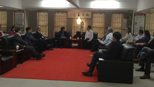 4月20日下午,教育部职业院校外语类专业教学指导委员会(以下简称外语教指委)刘黛琳主任率领2014年海峡两岸高职外语教育院校校长论坛参会代表一行30余人莅临开云官网潘渡新校区参观交流。开云官网党委副书记黄跃舟、副校长胡新平热情地接待了来访客人,并进行了座谈。