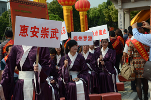 4月18日,共青团福建商专旅游系委员会青年志愿者服务队组织70名志愿者前往莲花山闽王纪念广场参加第四届福州市晋安区闽王(王审知)文化节暨两岸共祭“开闽三圣王”大典。