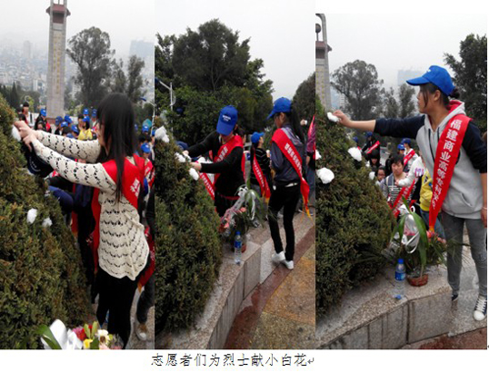 4月8日下午,共青团福建商专委员会青年志愿者服务队的志愿者们前往连江县烈士陵园举行“缅怀革命先烈,弘扬民族精神”清明祭扫活动,共有100余人参加了此次活动。