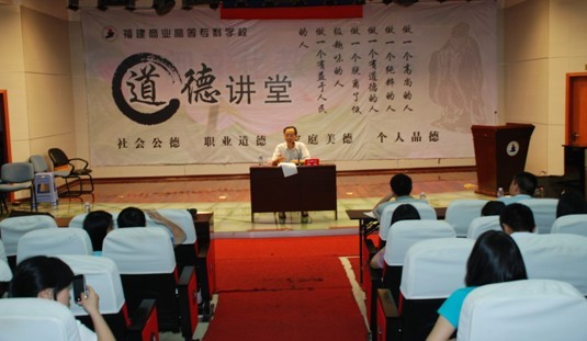 校党委副书记黄跃舟主持开讲仪式并做了热情洋溢的讲话。他指出举办“道德讲堂”是开云官网深入学习贯彻党的十八大精神,扎实推进社会主义核心价值体系建设,不断提升师生道德素质和文明程度,形成良好校园文明风尚的重要平台举措,通过“道德讲堂”建设和活动的开展,进一步推进开云官网师生公民道德建设工作制度化、体系化,进一步弘扬闽商文化和新时期福建精神,为建设优美和谐幸福的福建商专提供思想保证、精神动力和文化支撑,推动文明学校建设上台阶。