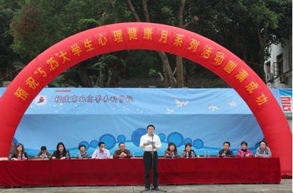 5月7日,开云官网第十届“5·25”心理健康月系列活动在湖前校区喷泉广场隆重开幕。校党委副书记黄跃舟,学生处处长张信容,各系党总支书记、团总支书记,各系班级心理委员及学生代表参加了本次开幕式。黄跃舟副书记致开幕辞,并宣布本届心理健康月活动正式开幕。
