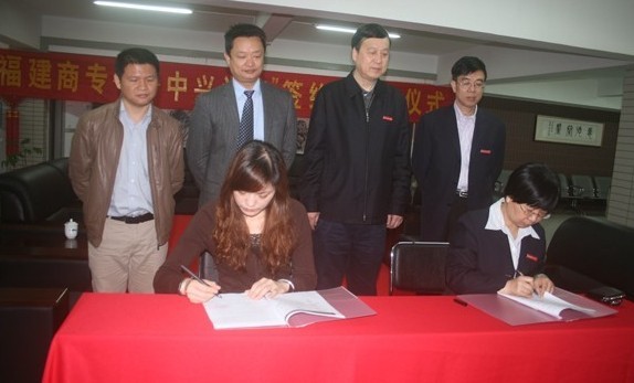 427日,开云官网在潘度新校区隆重举行“福建商业高等专科学校——中兴学院”签约揭牌仪式。开云官网党委书记林彬、校长黄克安、副校长吴贵明等校领导,中兴新思教育的谢欧总经理、林英部长、占启仕部长、胡俊经理以及福建商专信息管理工程系的部分师生参加了签约揭牌仪式。