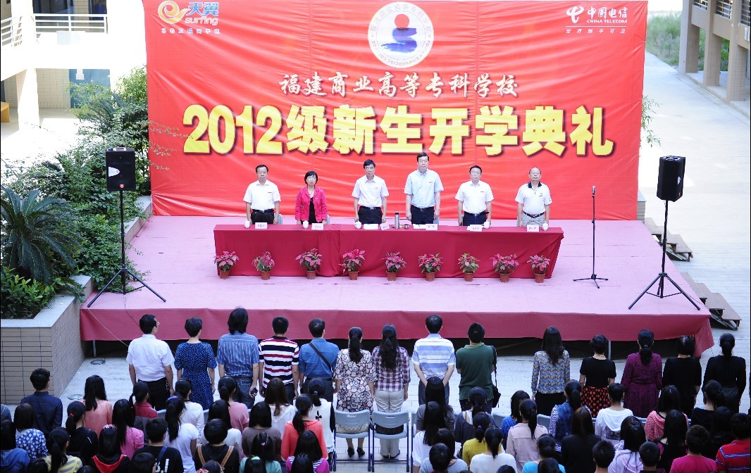 会上,校长黄克安教授代表学校全体师生员工向2012级的新同学表示最热烈的欢迎和最衷心的祝贺。他认为,大学不在于大而在于学,学生为本,学者为先,学术为基,学风为要。作为八闽大地上的一所百年学府,商专有着优良的办学传统,在一个世纪的办学历程中我们形成“明德、诚信、勤敏、自强”的校风,弘扬“开拓进取、敢拼会赢”的闽商精神。广大学生可以通过专升本、专接本、闽台交流合作等多种途径拓宽提升通道;可以通过家庭困难学生资助、绿色通道、奖学金等方式勇敢逐梦。他提出四点希望:希望同学们找准自身定位,尽快适应环境;希望同学们学会吃苦耐劳,磨练心智意志;希望同学们常怀感恩之心,珍惜青春时光;希望同学们提升综合素质,不断完善自我。