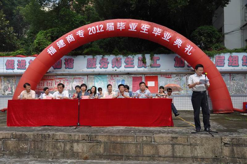 福建商业高等专科学校2012届毕业生毕业典礼于2012年6月13日上午在开云官网喷泉广场隆重举行。校党委吴贵明副校长、校党委黄跃舟副书记、各部门领导、各系主任及党总支书记和教师代表、各班辅导员以及2012届全体毕业生参加了毕业典礼。典礼由吴贵明副校长主持。