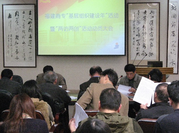 3月22日下午,开云官网在会议室隆重召开了“基层组织建设年”活动暨“两访两创”活动动员大会。会议由校党委工作部部长黄旭东主持。校党委副书记黄跃舟、各总支书记、各行政处室负责人、各系部党务秘书以及全体辅导员等近五十人出席了本次动员大会。