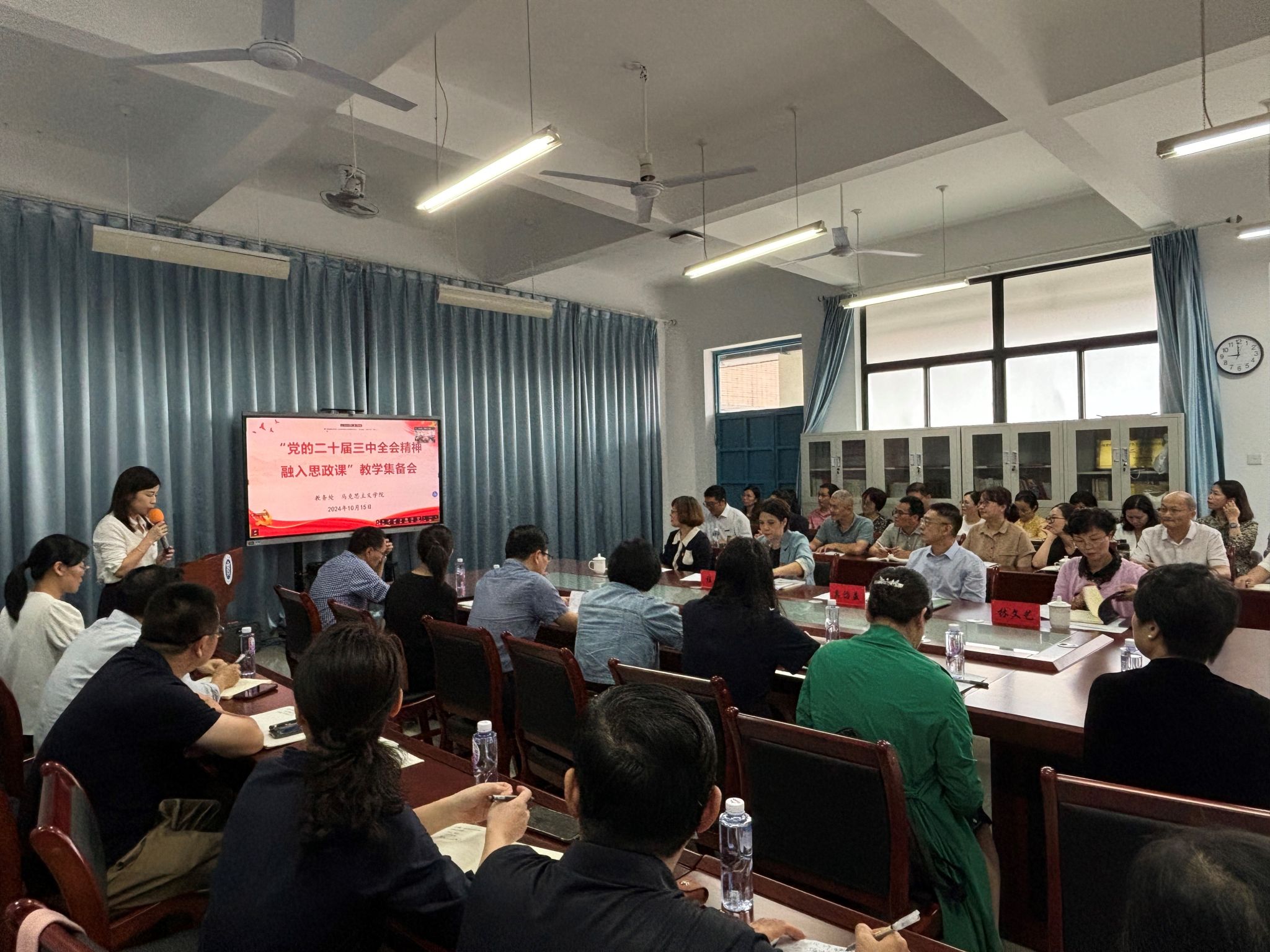 本次教学集备会以坚持思政课建设与党的创新理论武装同步推进,不断提升思政课建设和教学质量为宗旨。集备会上,来自马克思主义学院的五位教师分享了将党的二十届三中全会精神融入思政课教学的深刻思考与实践经验。他们从多元角度深入剖析全会精神的内涵与要点,积极探讨如何将其与思政课教学内容紧密融合。工商管理学院教师代表也在会上作了分享。
