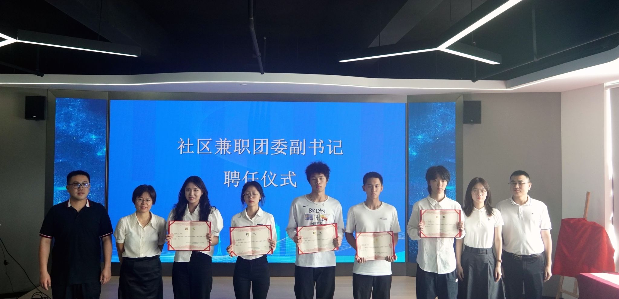 签约仪式后,五凤街道党工委为海外教育学院的学生代表颁发了社区兼职团委副书记聘书。