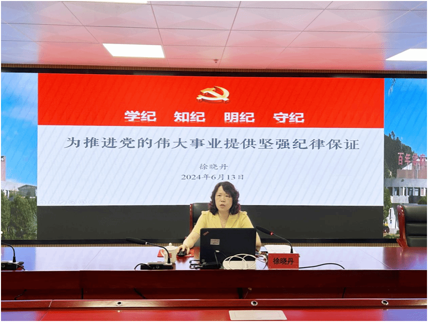 徐晓丹从开展党纪学习教育的重要意义、党纪学习教育的主要内容、《中国共产党纪律处分条例》总则修订的重点、党纪学习教育要求等方面,带领大家重温了党的纪律建设的历史传统和习近平总书记关于全面加强党的纪律建设的重要论述,解读了《中国共产党纪律处分条例》的主要内容,并结合新提任党员干部的思想、工作实际,对党纪学习教育提出具体要求。