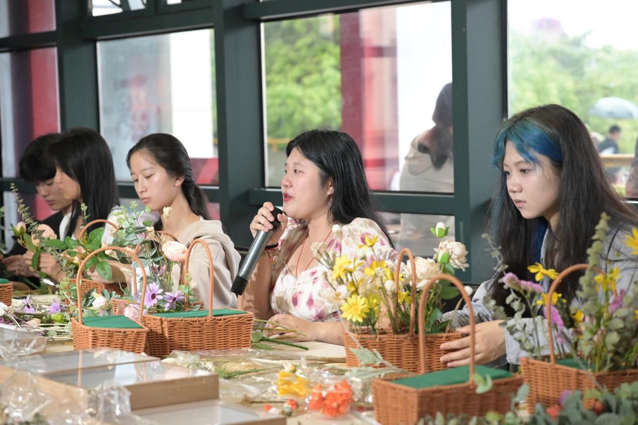 活动现场,辅导员谢婧妍向同学们介绍园艺疗法相关知识,激发了同学们对园艺疗法的兴趣。同学们在现场还体验了插花、植物拓染和干花装饰画制作,并互相分享创作理念和心得,现场欢声笑语不断,气氛融洽。