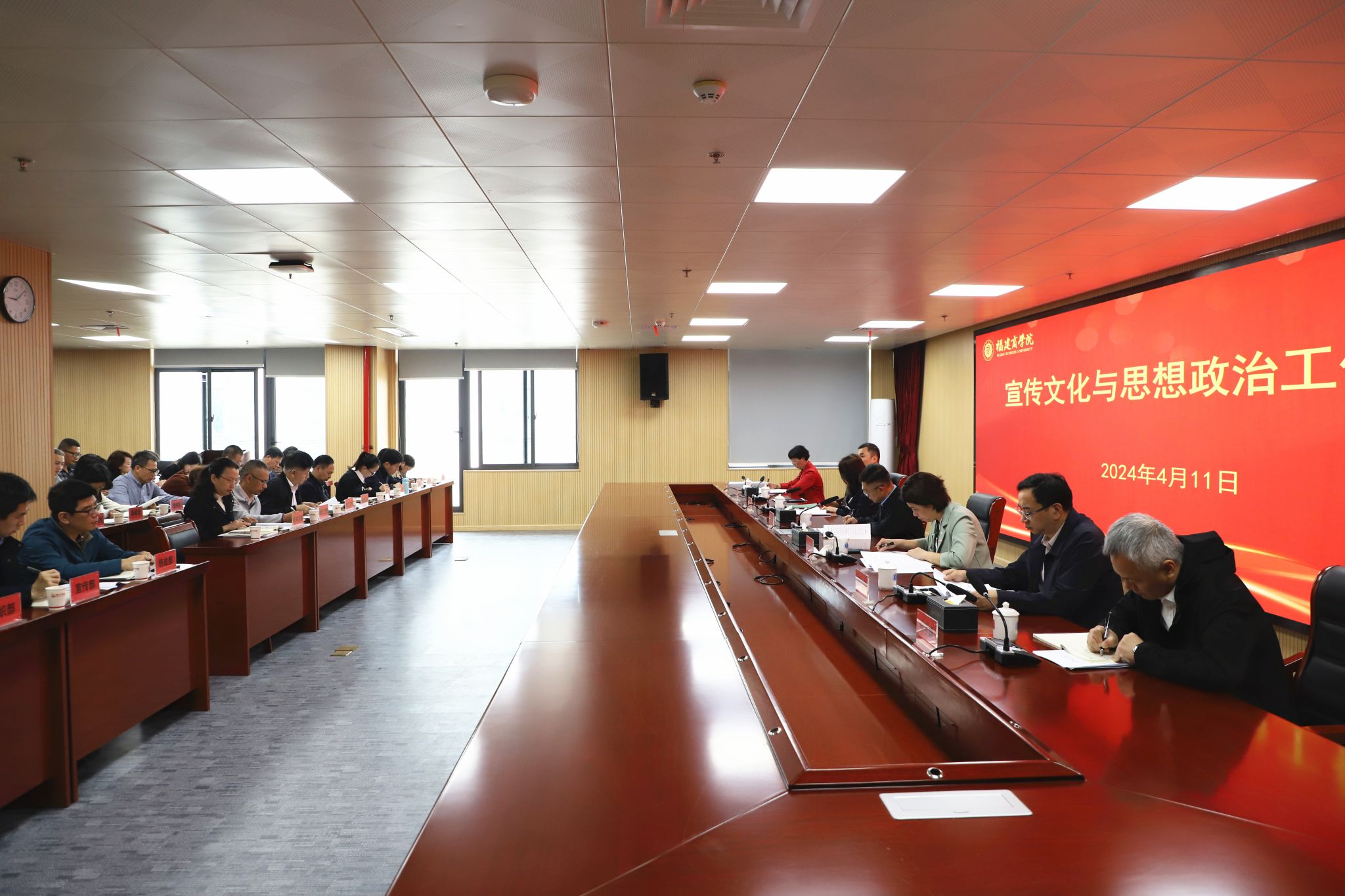 4月11日上午,开云官网在连江校区召开宣传文化和思想政治工作会议,校领导吴访益、程灵、徐晓丹、蒲文庆、萧罡、林宇峰、林文艺出席会议。各机关部门、教辅机构负责人,各二级学院党委书记、副书记参加会议。会议由校长程灵主持。