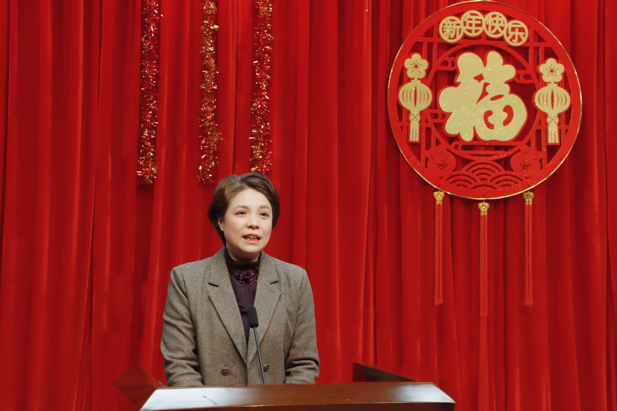 在集体拜年仪式上,吴访益带领校领导班子成员上台向离退休老同志拜年,并送上新年祝福。