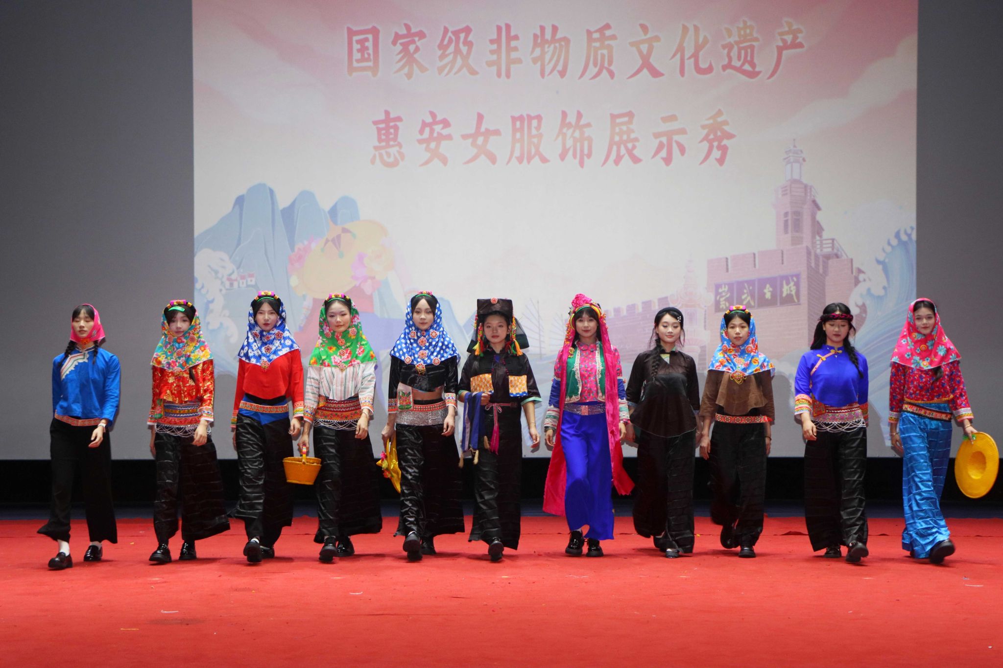 舞台展演区轮番上演视听节目:连江十番音乐非遗传承人以一曲古韵悠长的《雁来红》奏响千年雅乐,泉州南派布袋戏在方寸舞台间演绎指上乾坤,惠安女服饰与畲族服饰秀以流动的民族图谱展现服饰美学,原生态畲歌《山哈情》与畲族打枪担《幸福山歌》更是点燃全场热情。外场展示区同样异彩纷呈,闽菜文化展、团扇书法展、非遗文创展等多元展陈,从味觉记忆、笔墨丹青到创意转化,全方位解构非遗文化基因密码。连江剪纸的精妙镂空、连江鱼丸的匠心制作等互动展台,让福商青年直观感受本土非遗的独特魅力。