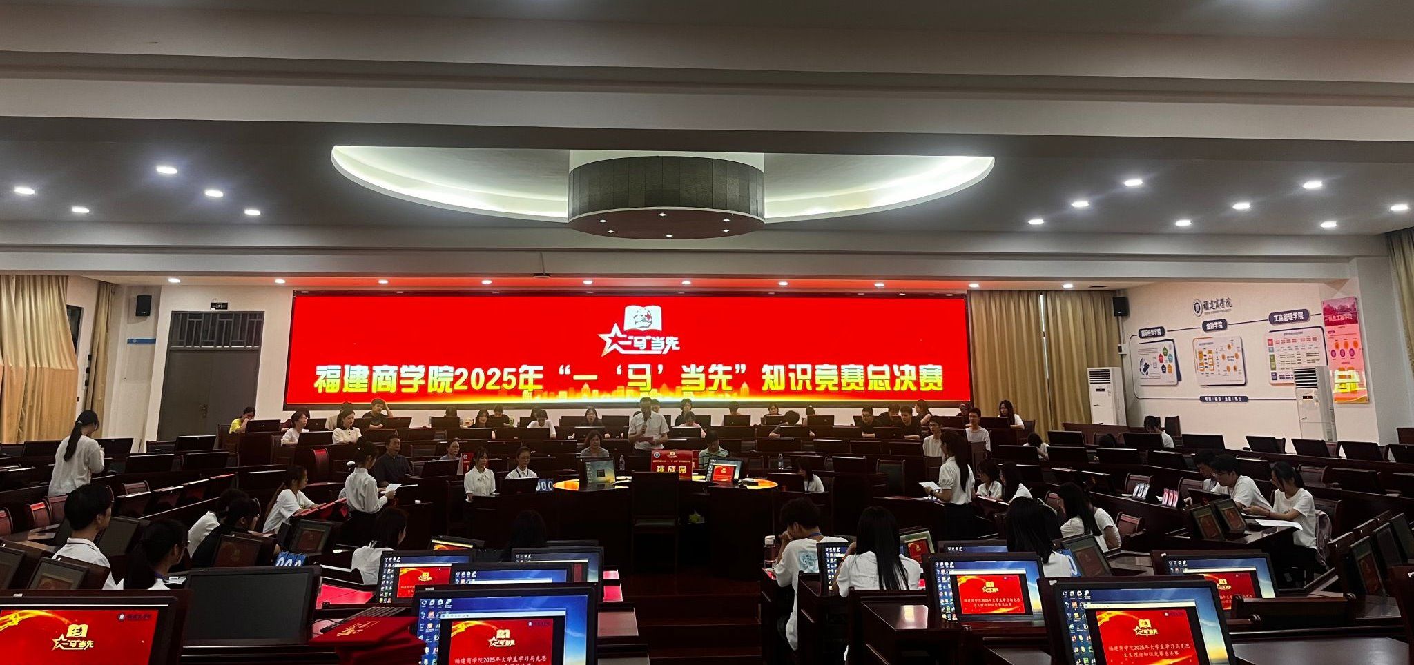 决赛分为必答和挑战两个环节,题目涵盖多种题型,全面考察选手对马克思主义理论的掌握程度和临场应变能力。比赛中,11名选手思维敏捷、反应迅速,充分展现了福商学子勤学善思、锐意进取的精神风貌。比赛最终评选出一等奖1名、二等奖2名、三等奖3名及优胜奖若干名。金融学院、财务与会计学院、国际经贸学院和旅游与休闲管理学院获得优秀组织奖。