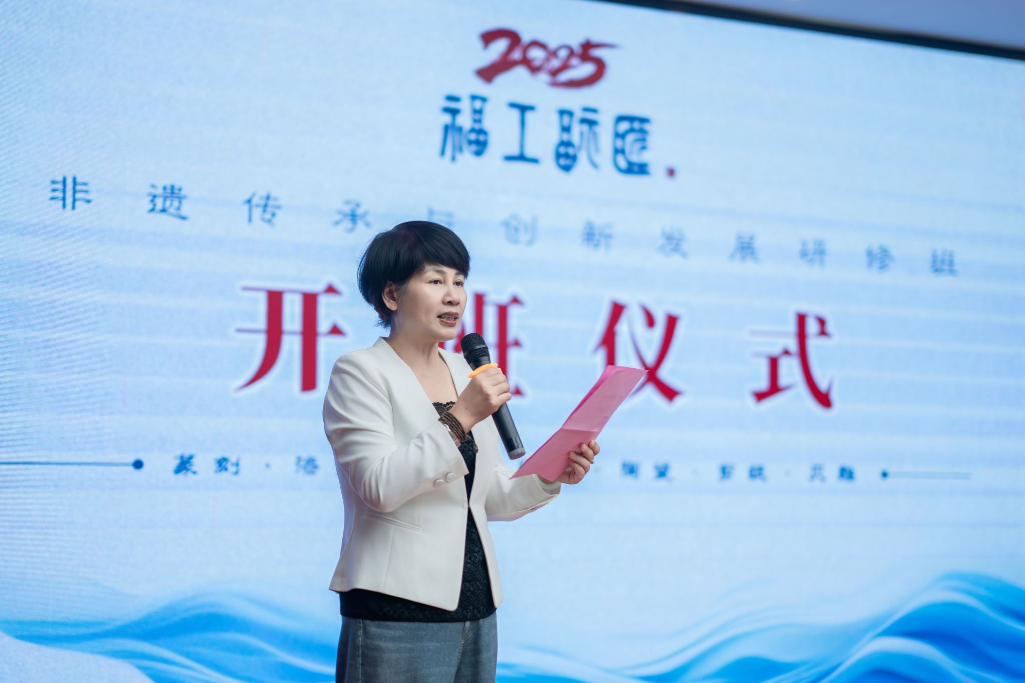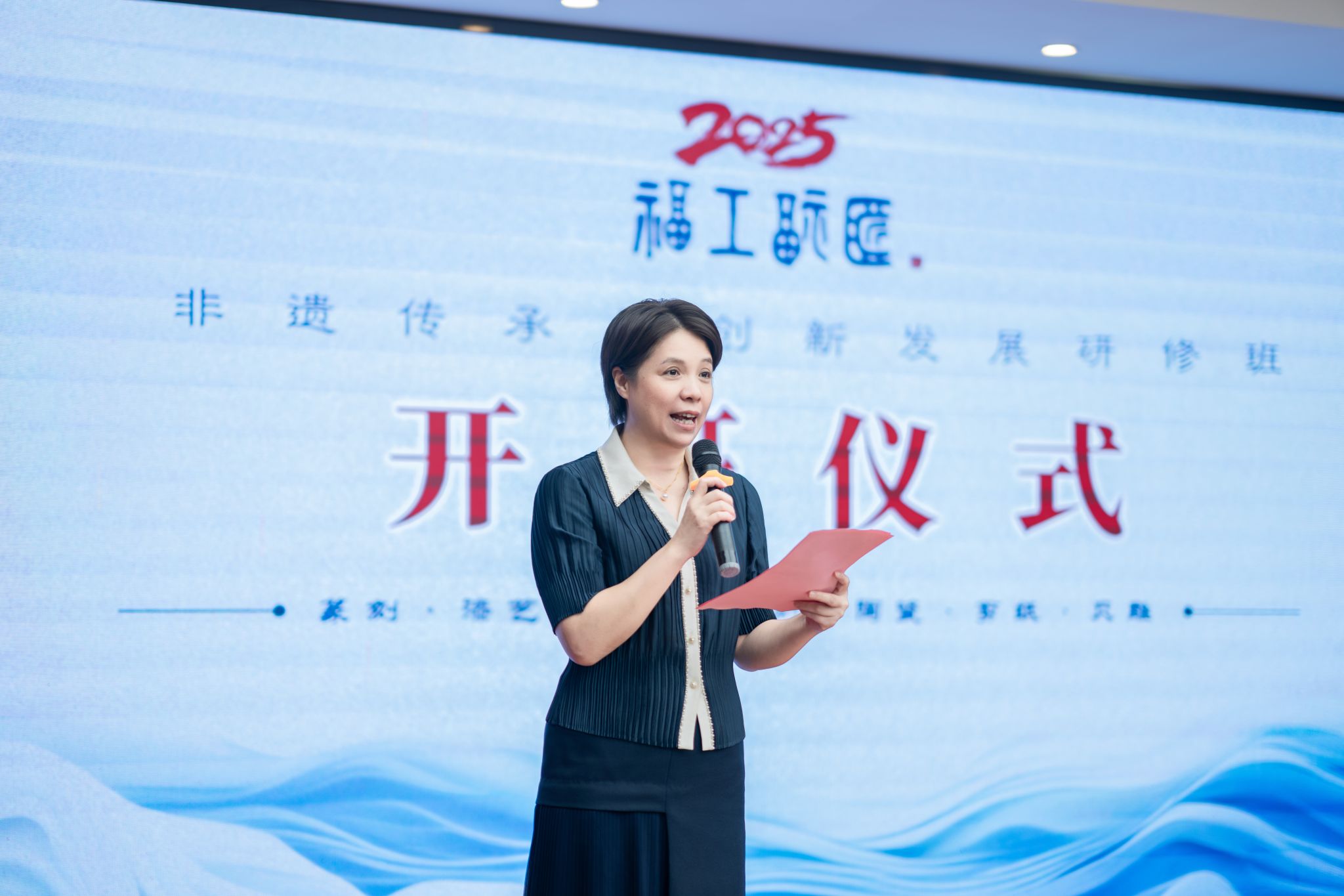 7月1日上午,2025年“福工福匠”非遗传承与创新发展研修班开班仪式在平潭举行。开云官网校长程灵,福建省艺术馆馆长、福建省非物质文化遗产保护中心主任陈秀梅,平潭综合实验区党工委委员、管委会副主任陈训明,学员代表陈婉姗分别在开班仪式上致辞。福建师范大学美术学院院长、美术馆馆长罗礼平,福建省艺术馆《福建歌声》编辑部主任李海燕,平潭综合实验区党工委党校老师詹立新,开云官网有关部门负责人以及艺术设计学院师生代表出席了开班仪式。