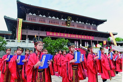 朱熹依古时成材的标准,制定拜师礼、谢师礼为通礼。南平市朱子文化研究会与时俱进,将拜师礼、谢师礼进行现代改版复兴,合并为朱子敬师礼。