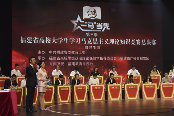 11月26日,由中共福建省委教育工委主办,福建省高校思想政治理论课教学指导委员会、省广播影视集团、东南卫视、福建教育电视台承办的第三季福建省高校大学生学习马克思主义理论“一‘马’当先”知识竞赛总决赛在省广播影视集团举行。省委常委周联清出席总决赛并为获奖者颁奖。