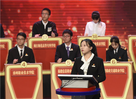 在高职高专组总决赛中,来自福建船政交通职业学院的张庆源是全场关注的焦点。在之前的半决赛中,他获得了298分的高分力压全场,以超过第二名近100分的成绩首先获得总决赛的入场券。在总决赛现场,张庆源继续保持强势劲头,在必答环节就以大比分优势占据上风,并最终以总成绩51分夺得高职高专组一等奖。
