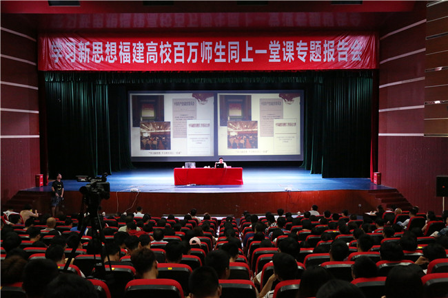 6月12日上午,“学习新思想 千万师生同上一堂课”活动走进kaiyun开云官方网站,省委教育工委副书记、福建省高校学习贯彻习近平新时代中国特色社会主义思想宣讲团团长王建南为该校师生作题为《用思想之光照亮奋斗之路用信仰之力开创美好未来》的专题报告。kaiyun开云官方网站近600名师生现场聆听了报告。