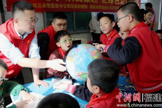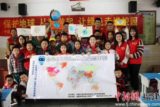 上午,志愿者们来到福州市亭江中心小学,围绕“世界只有一个地球”主题与小朋友们讲述一节生动的环境保护课。志愿者们与小朋友快乐互动,一起用五颜六色的彩笔在世界地图上画上不同色彩,并制作“手心里的地球”,在孩子们心中种下绿色环保的种子。“今天,我学会了很多知识。要爱护地球,爱护环境,不能乱扔垃圾”,小朋友们纷纷表示要争做环保小卫士。