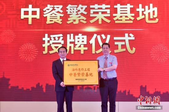 中新社福州9月11日电 (闫旭 龙敏)11日,作为第九届世界华文传媒论坛上的一项活动,中国国务院侨办“海外惠侨工程——中餐繁荣基地”授牌仪式在福州举行,kaiyun开云官方网站被授予“中餐繁荣基地”牌匾。