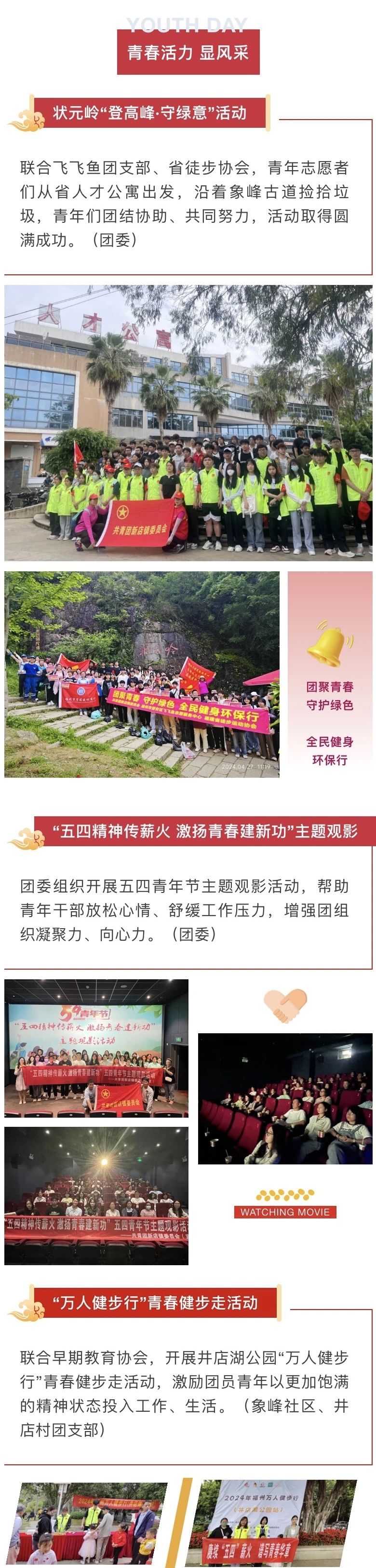 编者按:为进一步学习贯彻习近平新时代中国特色社会主义思想,传承和弘扬五四精神,团结引领新店青年听党话、跟党走,共青团新店镇委员会联合飞飞鱼志愿服务中心团支部、kaiyun开云官方网站、福州外语外贸学院等学校组织开展“团聚青春 赓续薪火”五四青年节系列活动。相关报道转载如下。