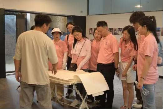 在棠口村,实践队员瞻仰新四军六团北上抗日纪念碑,参观棠口村红色文化展示馆。张书巡馆长向队员们详细介绍了馆内展品。实践队还走进千年古廊桥——千乘桥,其独特的四柱九檩抬梁式木架构,配以歇山顶的桥顶设计,桥身精美的木雕与流畅的线条相映成趣,见证着岁月的流转。
