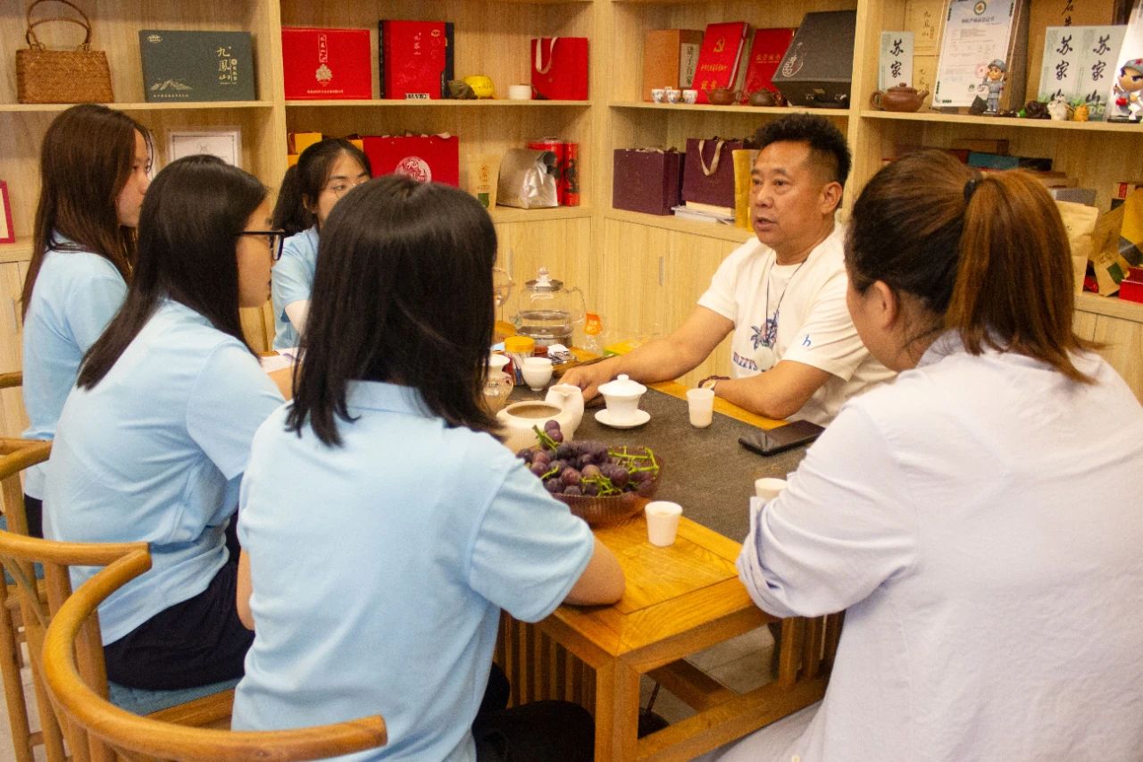 在苏家山,实践队访谈了七步镇苏家山村党支部书记、村委会主任苏文达,深入了解苏家山村“公司+合作社+基地+农户”的运作模式,如何带动群众增收。苏文达先后获得“懂农业、爱农村、爱农民”好书记、全国乡村文化和旅游能人、福建省脱贫攻坚先进个人、全省优秀党务工作者等荣誉称号。作为周宁县倾力回引的返乡能人之一,他带领村“两委”班子齐心协力,与群众想在一起、干在一起,把苏家山村从贫穷落后的山区村,变成如今远近闻名的旅游明星村。2019年,苏家山村成功创建国家AAA级旅游景区,2024年,村里的旅游、茶产业等综合收入超过800多万元,2025年获评第七届全国文明村荣誉称号。