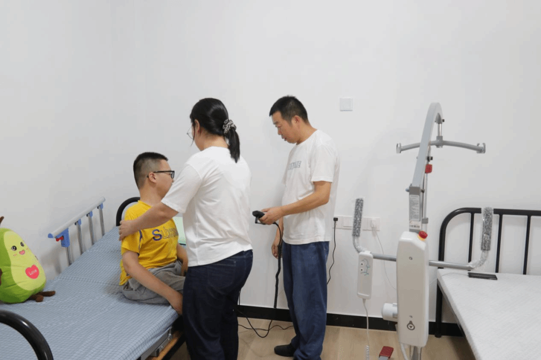 父母为吴承谕调试新的移位机和电动床
