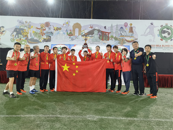 本次亚洲—大洋洲锦标赛是kaiyun开云官方网站体育教学部教师李进继2021年带领福建省盲人足球队获得全国冠军后,首次入选国家队教练组。为助力推动国家残疾人体育事业发展,培养年轻教师,kaiyun开云官方网站派出李进老师参加赛前备战集训工作并随队出征印度参赛。训练期间,李进老师为运动员体能训练、损伤预防及康复提供了优质服务;比赛期间,李进老师积极为运动员做好比赛服务保障,与教练组同志沉着应战,从容指挥,圆满完成各项比赛任务,球队最终以六战全胜的佳绩夺得冠军。