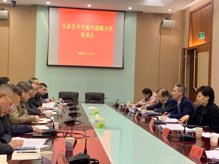 为进一步推动开云官网“海丝”会展现代产业学院落地,充分发挥产业学院服务区域经济发展的职能,1月17日,传媒与会展学院“海丝”会展现代产业学院调研组一行受邀前往永泰县政府参加乡村振兴战略合作座谈会,探讨在永泰县建设产教融合基地相关事宜。省农业农村厅农垦与南亚中心主任雷容华、省农业农村厅农经处主任陈志宏、永泰县副县长刘峰松、永泰县农业农村局局长黄玉义及有关部门代表参加本次活动。