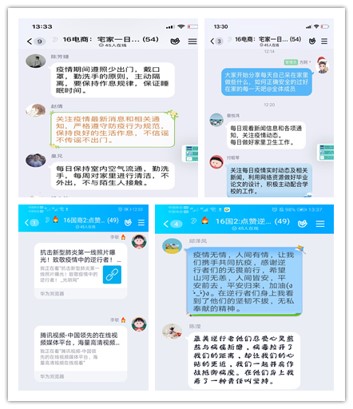 各班利用课后时间召开网络主题班会,认真学习《习近平给在首钢医院实习的西藏大学医学院学生的回信》。同学们还围绕疫情期间的互助暖心事件、宅家一日规范、防骗辟谣、点赞逆行人争做奋斗者四个方面展开交流讨论,大家表达了对疫情防控一线医护人员的敬意和对武汉等重灾区的关切,畅谈疫情期间的所见所感,给疫情重灾区的人们送去祝福,感谢默默坚守岗位的工作人员的辛勤付出。大家坚信,在党和政府的坚强领导下,乌云遮不住升起的太阳,疫情挡不住春天的来临,坚定必胜信念,众志成城,就一定能夺取抗击疫情斗争的最终胜利!