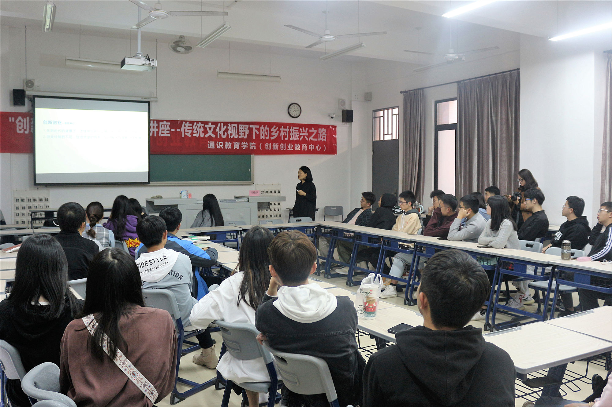 12月17日下午,通识教育学院(创新创业教育中心)举办了一场题为“传统文化视野下的乡村振兴之路”的讲座,邀请福建省社会创新研究院(筹)负责人、闽江学院创意创业教育园创始人岑晓华老师为同学们开讲,创新创业部及闽商协会的同学们参加了本次讲座。