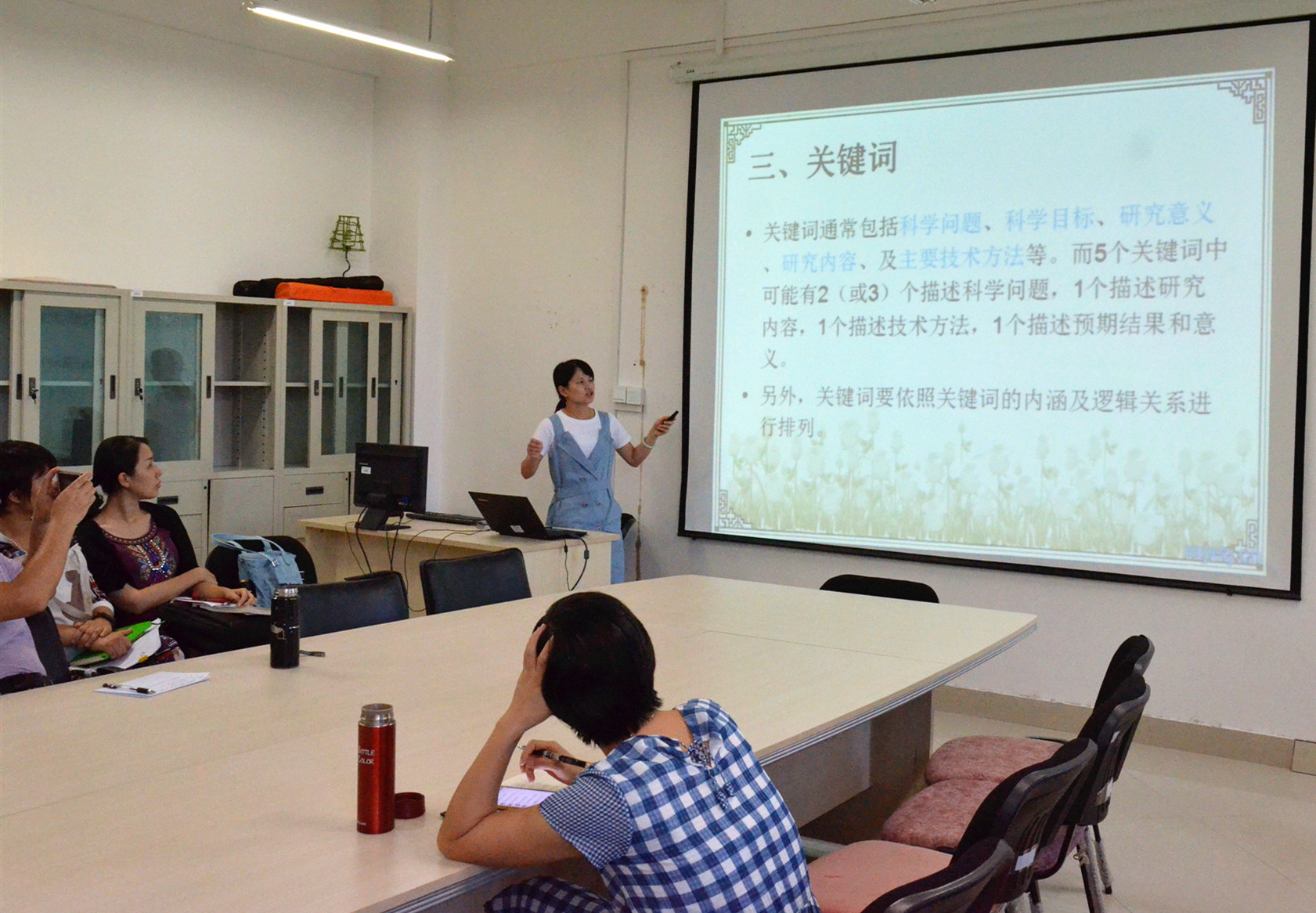 雷丽梅博士围绕国家自然科学基金申报书的基本内容,从大局和细节两个方面阐述了“任何帮助评委的举措,都是帮助你自己”的道理,从项目名称的命名原则、关键词应囊括的内容及其排列原则、摘要的具体写法及常见问题等方面进行阐述。雷博士提出对申请书的整体理解以及其他需要注意的问题。她表示,研究题目是更为精准的摘要,研究选题要“小而精”而非“大而全”,选题既要贴合实际,又不能脱离前期研究基础,摘要撰写需字字玑珠。研讨会上,在座青年教师就课题申报相关问题进行热烈讨论,达到了促进学术交流、开拓教师视野的目标。