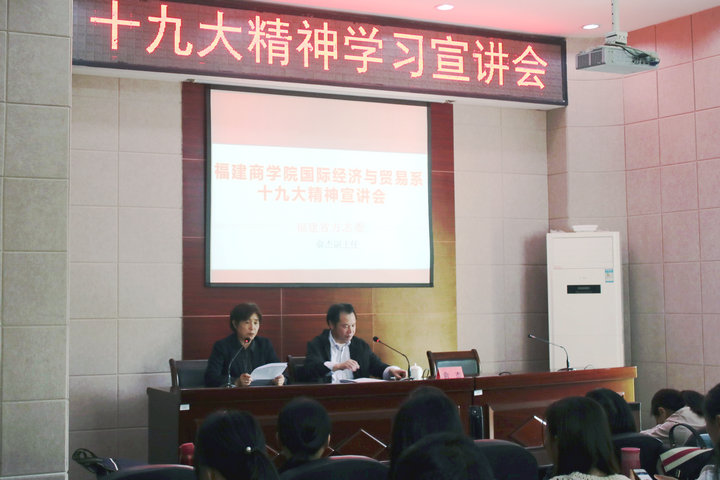 为学习贯彻党的十九大精神,传承发扬中华优秀传统文化,培育弘扬社会主义核心价值观,践行福建精神,坚定文化自信。4月10日下午,国际经济与贸易系特邀福建省方志委副主任俞杰到校开展党的十九大精神专题宣讲。该系全体师生党员和学生干部参聆听了宣讲。