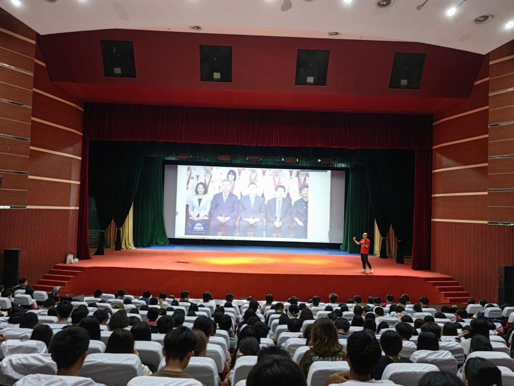 李进老师以“做自己的冠军”为主题,结合自身带领中国盲人足球队在巴黎残奥会上取得优异成绩的经历,向同学们讲述了奥运精神的内涵和价值。他表示,奥运精神不仅仅是赛场上的拼搏和胜利,更是一种永不放弃、勇往直前的人生态度。他鼓励新生们在大学生活中,遵循“明德、诚信、允能、笃行”的校训,努力学习建设祖国的本领,敢于面对困难和挑战,勇于拼搏、挺膺担当,不断超越自我,追求卓越。