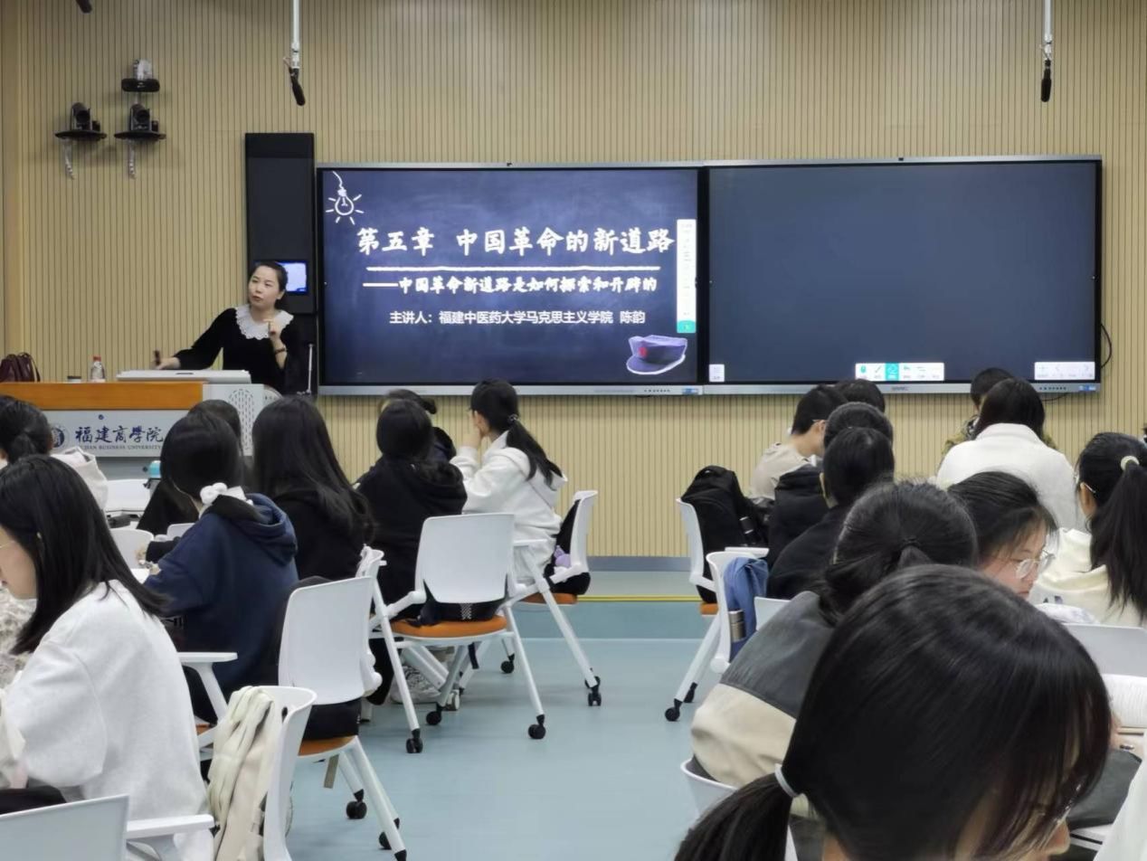 近日,应马克思主义学院邀请,全国高校思政课教学能手、福建中医药大学马克思主义学院陈韵教授走进连江校区智慧教室,以“对革命新道路的艰辛探索”为题开展教学示范。