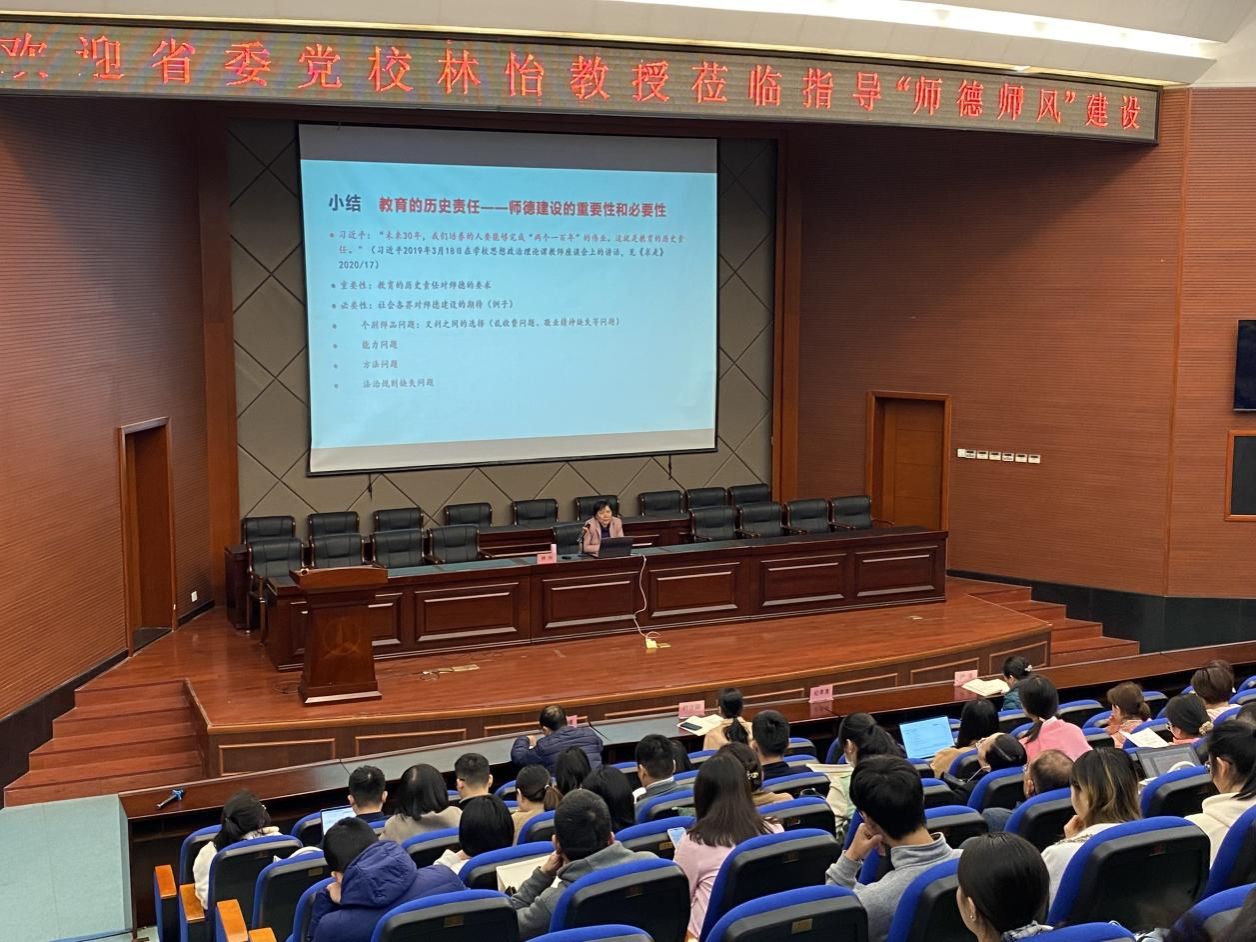 近日,福建省委党校林怡教授应邀到开云官网作题为“春风化雨、立德树人——新时代师德建设与使命担当”的专题讲座。工商管理学院全体教师、部分学生共150多人参加学习。
