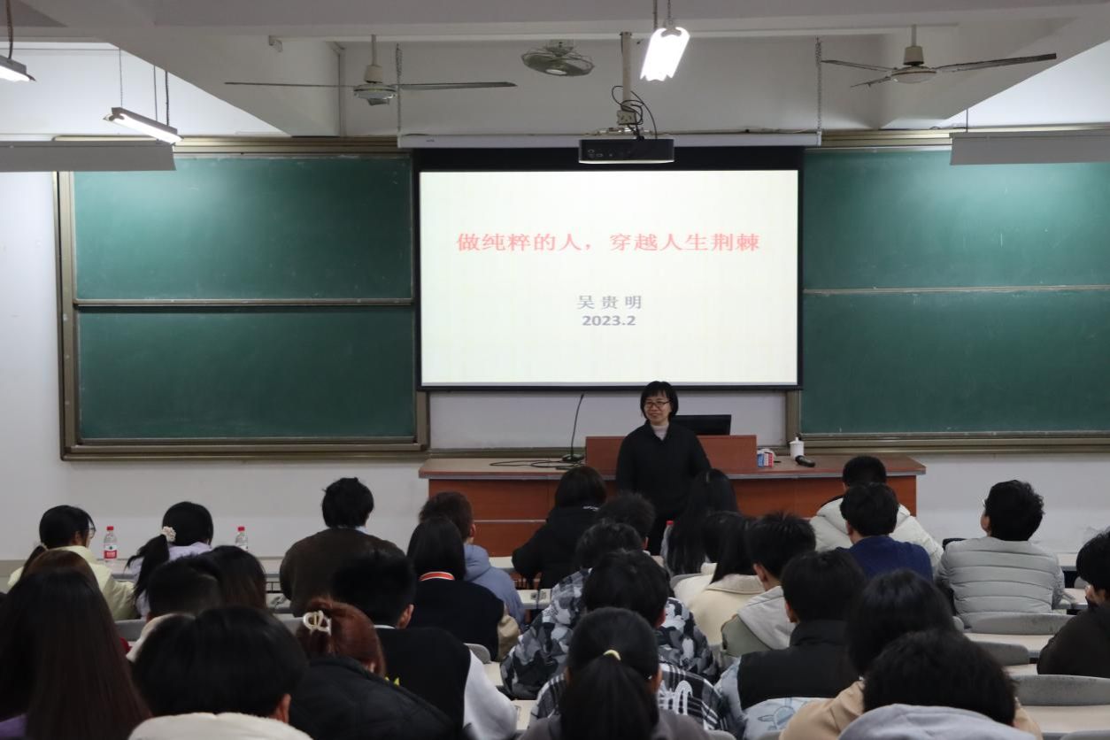 2月22日晚上,福建省委党校吴贵明教授应邀到开云官网作“做纯粹的人,穿越人生荆棘”专题讲座。马克思主义学院部分教师、校习近平新时代中国特色社会主义思想读书社社员等共120多人参加学习。