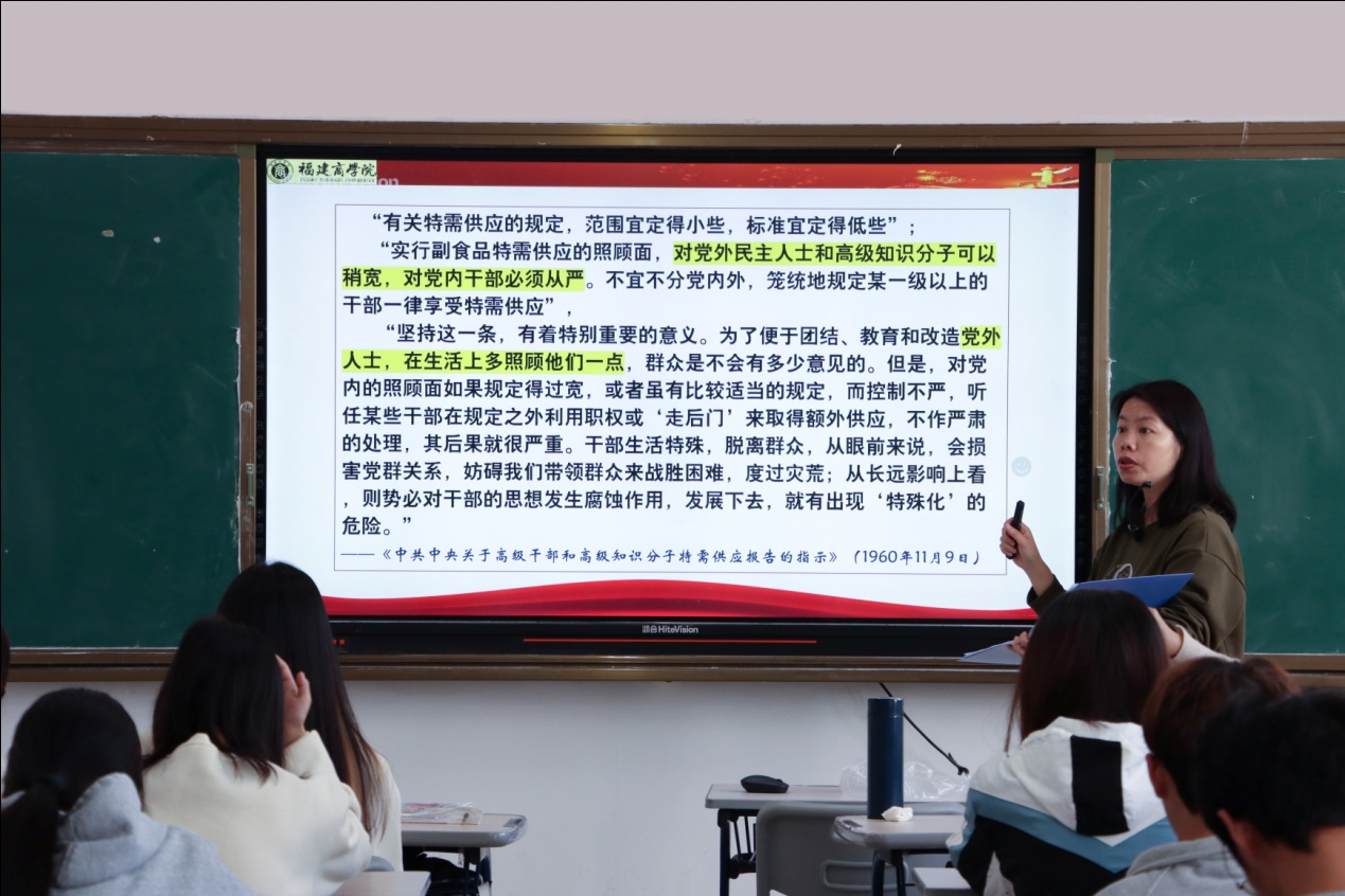 为进一步学习贯彻党的十九届六中全会精神,从党的百年奋斗重大成就和历史经验中汲取前行动力,近日,马克思主义学院李莉副教授在连江校区诚信楼302教室开展“百年光荣:中国共产党和人民”主题宣讲活动。连江校区“青马班”学员、校习近平新时代中国特色社会主义思想读书社社员参加学习。