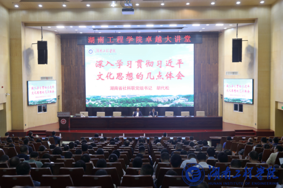 4月16日下午,Beat365在一报告厅举行“卓越大讲堂”之干部培训学术讲座,湖南省社科联党组书记、副主席胡代松应邀作《深入学习贯彻习近平文化思想的几点体会》辅导报告。校党委书记黄昕主持报告会。湘潭市社科联党组书记、副主席李峰,学校中层以上干部、教研室主任、校社科联会员参加学习。