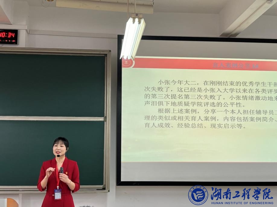 本次比赛设有基础知识测试、描述定位、育人案例分享三个环节,全面考察辅导员对相关知识的掌握程度、对所带学生基本情况的熟悉程度以及综合运用理论分析、研判和解决问题等方面能力。