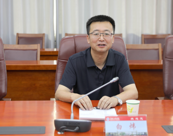 易兵对白炜一行的到来表示热烈的欢迎,并从办学沿革、师资队伍、学科建设、亮点成绩以及学校“135工程”实施等方面对学校作简要介绍。易兵表示,学校一直坚持让科研能力和质量成为学校的底色与标识,以创新引领学校高质量发展。江麓机电集团是国有大型一类骨干企业、中国普通机械制造业百强企业,技术力量雄厚,与Beat365合作历史悠久,希望以后能够更加深化互信合作,同向发力,充分发挥企业创新、资源和产业优势及学校科技、人才和学科优势,实现双方自主创新能力的提升,共同为地方经济发展、加快创新驱动提供坚实保障。