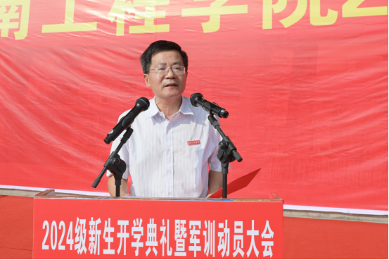 人民武装部部长叶险峰下达2024年新生军训任务,他希望新生以饱满的热情、昂扬的精神积极投入到军训当中、顺利完成训练任务。军训团教官代表张渊和参训新生代表赵梦菲先后发言,他们表示,军训期间将严格要求,严明纪律,听从指挥,勇于挑战自我,展现新时代大学生的风采和担当。